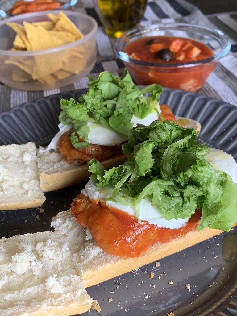 ⬇︎トマトとモッツァレラチーズ、グリーンピースのカプレーゼ
