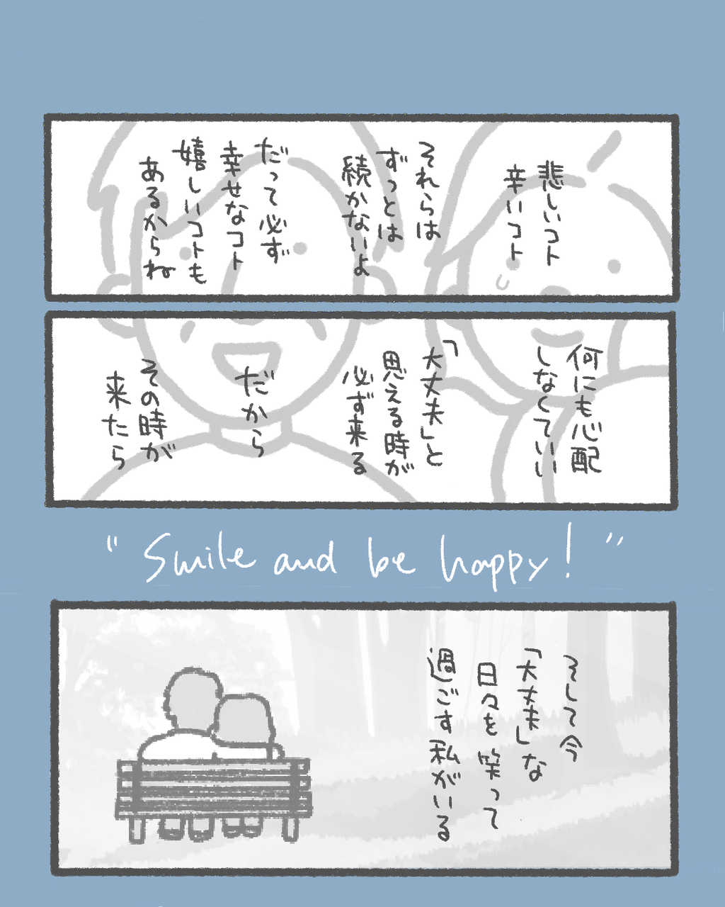 たくさんの人のおかげで、私は現在みなさんもご存知の通り、呑気に笑顔で過ごせる日々を送っています。この「大丈夫」な日々をずっと大切に過ごしたいと思います。
