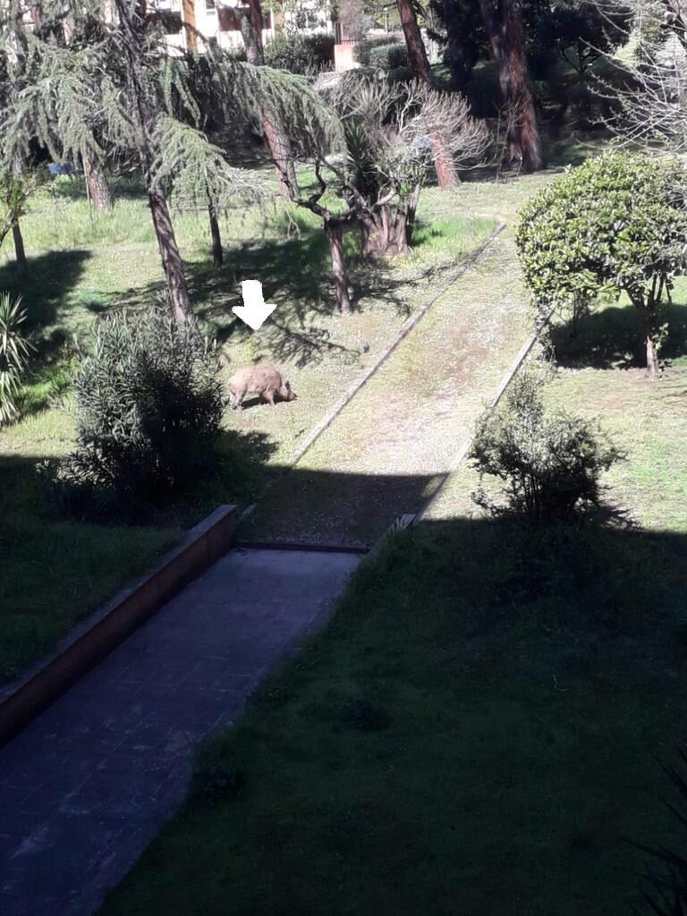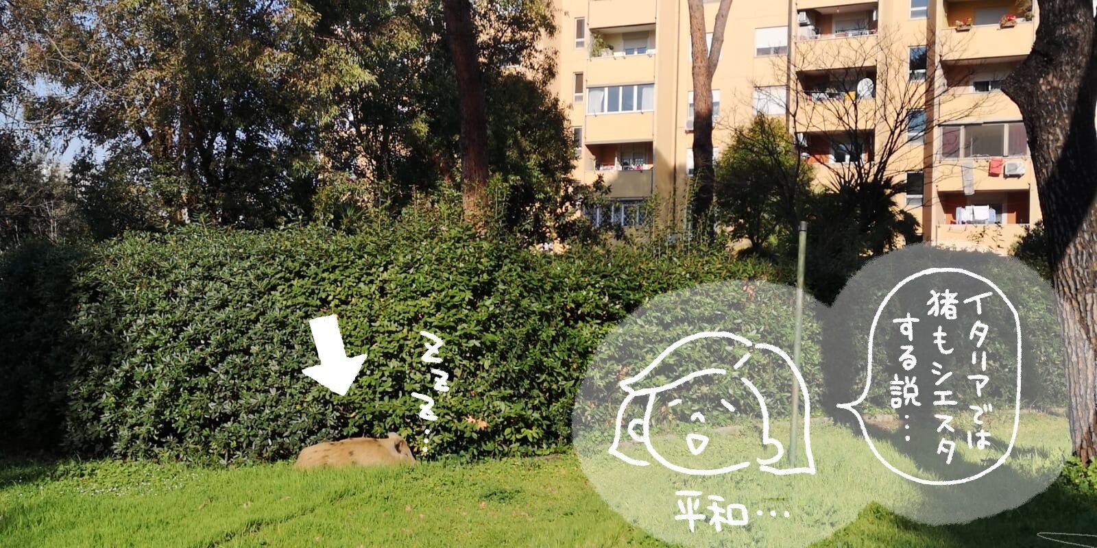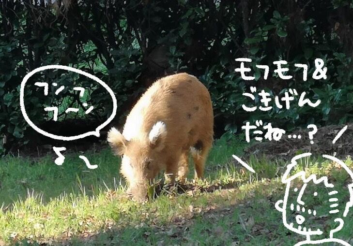パパ「今、君たちのアパートの裏庭に猪が来てるみたいよ🐗」