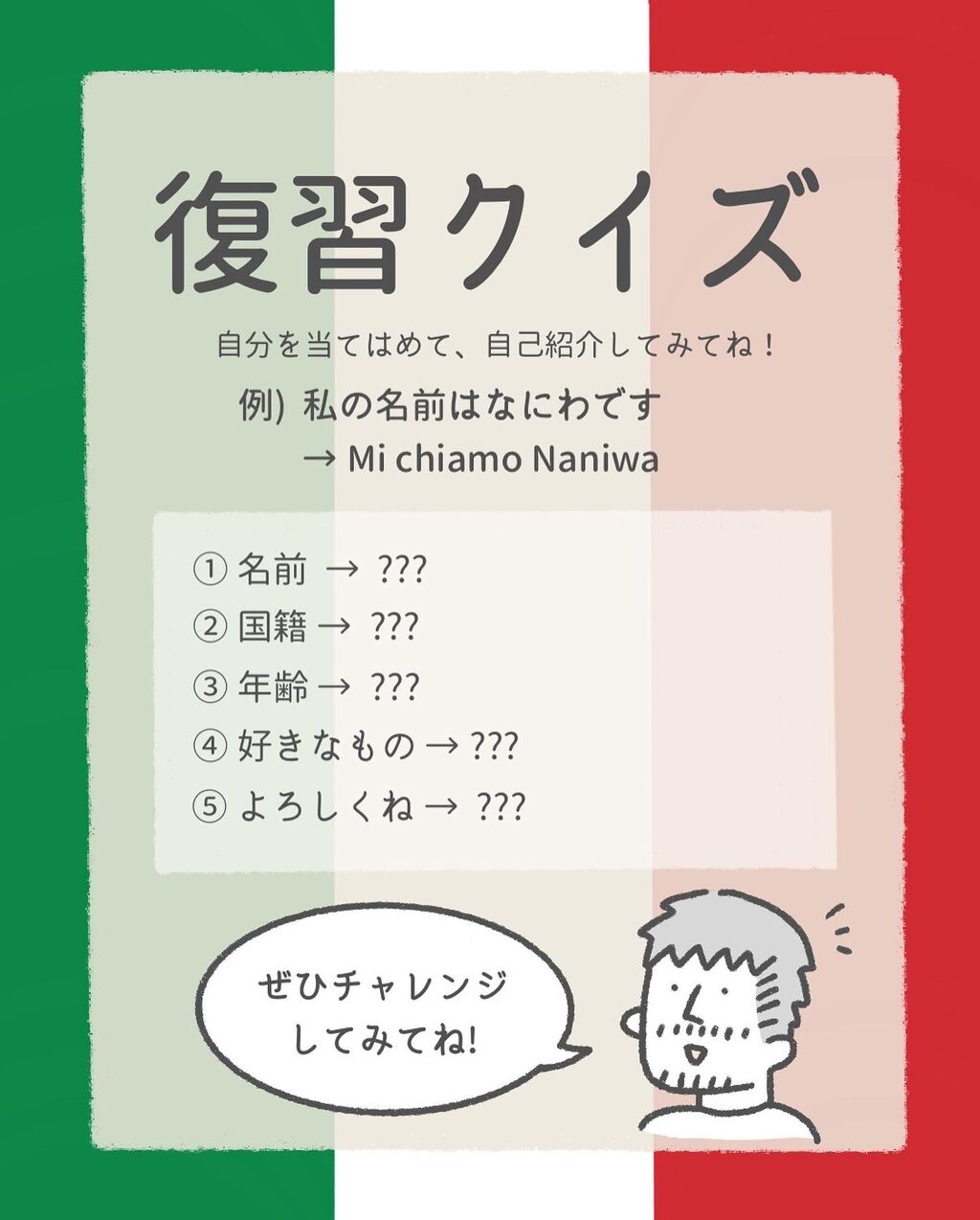 復習クイズにもぜひチャレンジしてみて下さいね♪そして「復習クイズやったよー!」て方は、ぜひ拍手で教えて下さい👏励みになります😊