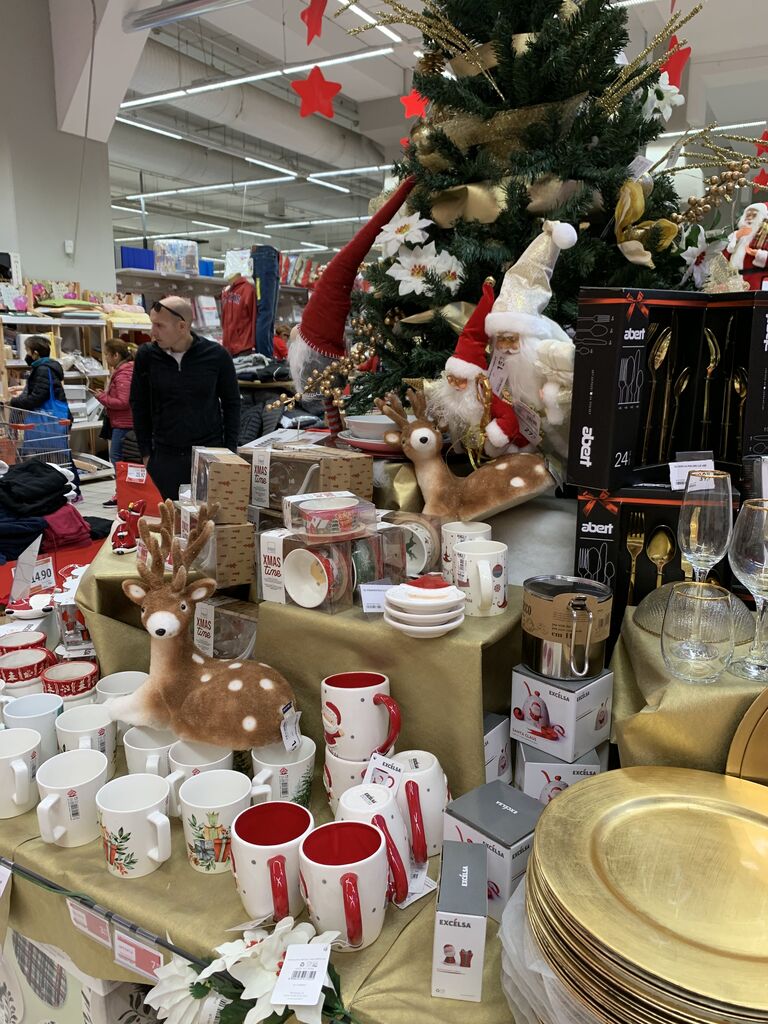 ▼はしゃぎながらゲートをくぐると、並ぶクリスマスグッズの山