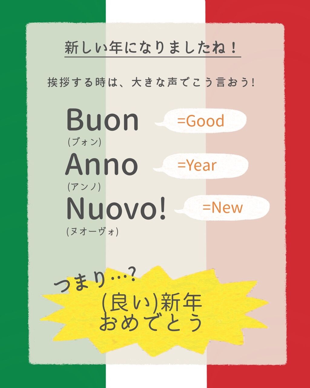 そんな時に使うのが、こちらの「新年の挨拶」のフレーズ。