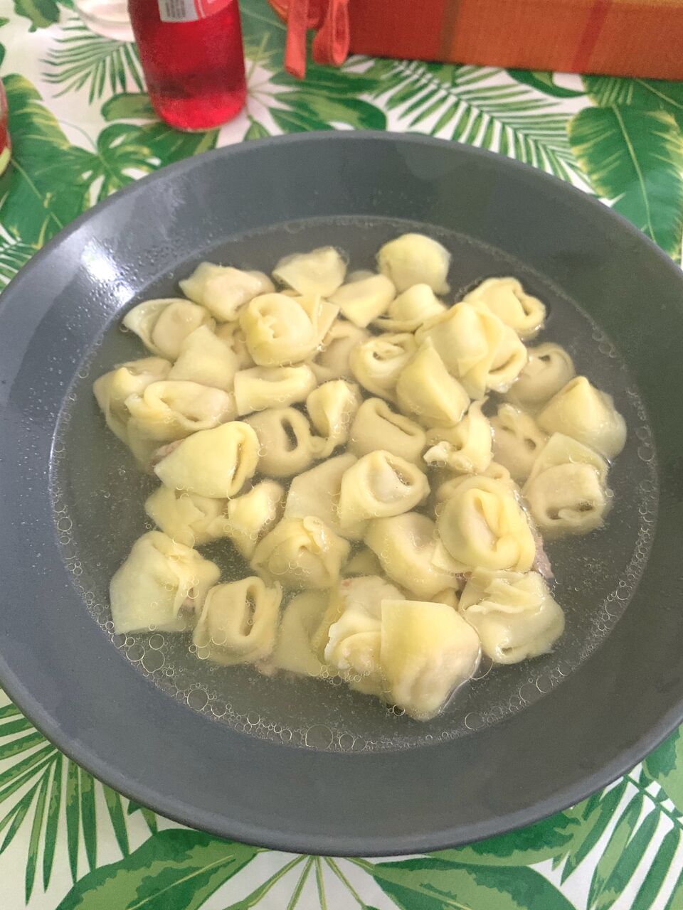 トルテッリーニは、お野菜とお肉をコトコトじっくり煮込んで作ったスープの中に生ハム入りの小さなラビオリが入っているお料理です😋