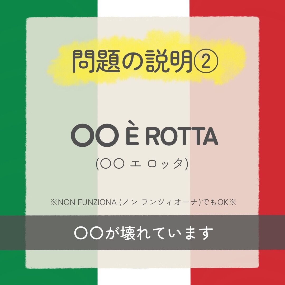 私はまだ経験がないのですが「何百年も前からの古い建物のホテルだとお風呂でお湯が出なかったり、客室の備品が壊れていたり…ということもある」と、海外旅行の達人(←驚愕のフッ軽レベルMAX笑)である友人に聞いたので、今回はそれに備えたフレーズも入れてみました😅笑