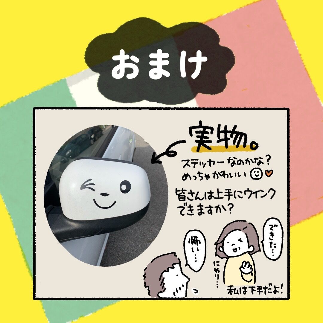 まさか車にまでウインクされるとは思わなかったけど…笑)でもこれをミラーにあつらえようというアイデアがまた素敵!座布団一枚!